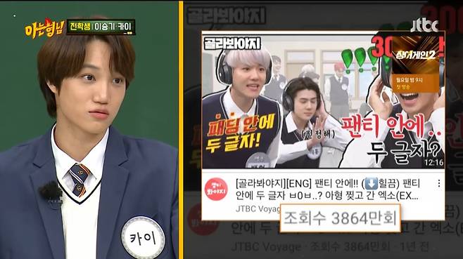 한편 카이는 "'팬티 안에 두글자' 이후 예능을 많이 하게 되었다"고 밝혔다. 해당 유튜브 영상은 3864만뷰를 기록한 상태로 웬만한 뮤직비디오 보다 조회수가 높다.