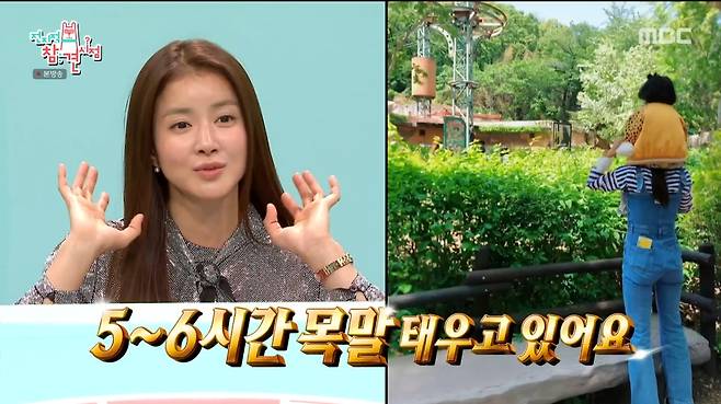 이날 이시영은 아들 정윤이를 업고 북한삭 오르기에 도전했다. "평소에도 놀이공원가면 5~6시간씩 목마를 태우고 있다"는 그는 "남편보다 내가 낫지 않을까 생각한다"면서 남다른 체력을 자랑했다.