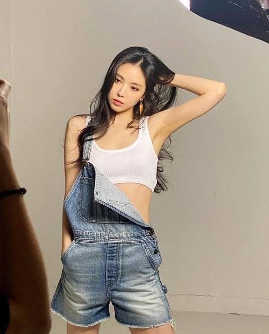 에이핑크 겸 배우 손나은이 데님 점프수트룩으로 섹시미를 발산했다.