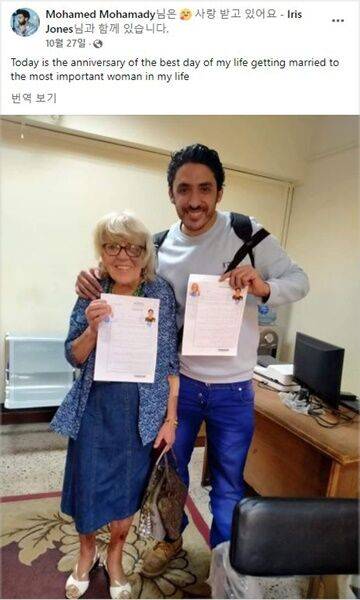 이집트 출신의 이브리함 씨는 지난해 11월 카이로에서 영국 출신 존스 할머니와 결혼식을 올리고 정식 부부가 됐습니다. 이들은 2019년 SNS 무신론자 모임에서 만나 연인이 됐습니다. 당시 영국 언론과의 인터뷰에서 이브리함 씨는 "아내가 나를 보러 이집트까지 날아왔는데, 그녀를 보자마자 진정한 사랑임을 깨달았다"고 밝혔습니다.