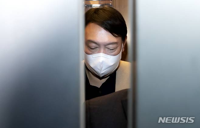 [서울=뉴시스] 국회사진기자단 = 윤석열 국민의힘 대선 후보가 선거대책위원회 출범을 하루 앞둔 5일 오전 서울 여의도 중앙당사에서 열리는 비공개 회의에 참석하고 있다. 2021.12.05. photo@newsis.com