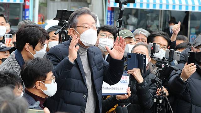 이 후보는 시장 즉석연설에서 “온갖 전직 검사들로 만들어진 세력이 내년 선거에서 이겨서 검찰 국가 만들겠다고 도전하고 있다”며 “국민의 정권, 민생을 가장 우선시하는 정권이어야 한다”고 말했습니다.