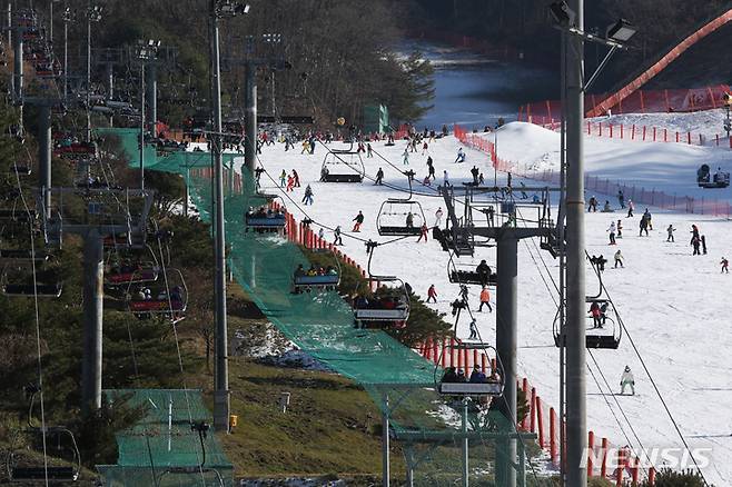 [홍천=뉴시스] 김경목 기자 = 정부의 방역 강화 시행을 하루 앞둔 5일 오후 스키어·스노보더들이 강원 홍천군 소노(구 대명) 비발디파크 스키장에서 겨울 스포츠의 즐거움을 만끽하고 있다. 2021.12.05. photo31@newsis.com