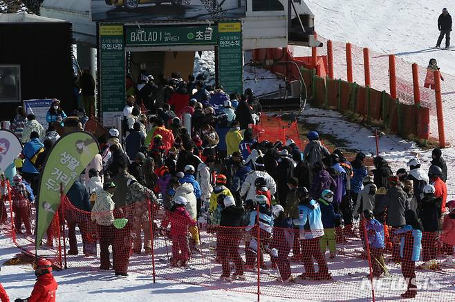 [홍천=뉴시스] 김경목 기자 = 정부의 방역 강화 시행을 하루 앞둔 5일 오후 강원 홍천군 소노(구 대명) 비발디파크 스키장이 스키어, 스노보더들로 북적이고 있다. 2021.12.05. photo31@newsis.com