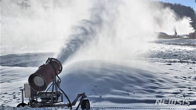 [횡성=뉴시스] 이덕화 기자 = 5일 강원 횡성군 소재 웰리힐리스노우파크가 30여 대의 제설장비로 스키장 곳곳에 하얀 눈을 뿌리고 있다. 2021.12.05. wonder8768@newsis.com