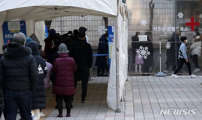 [서울=뉴시스] 백동현 기자 = 코로나19 신규 확진자가 5,128명으로 집계된 5일 오후 서울 서초구보건소 선별진료소에서 시민들이 검사를 받기 위해 대기하고 있다. 2021.12.05. livertrent@newsis.com