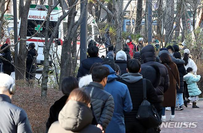 [서울=뉴시스] 백동현 기자 = 코로나19 신규 확진자가 5,128명으로 집계된 5일 오후 서울 서초구보건소 선별진료소에서 시민들이 검사를 받기 위해 대기하고 있다. 2021.12.05. livertrent@newsis.com