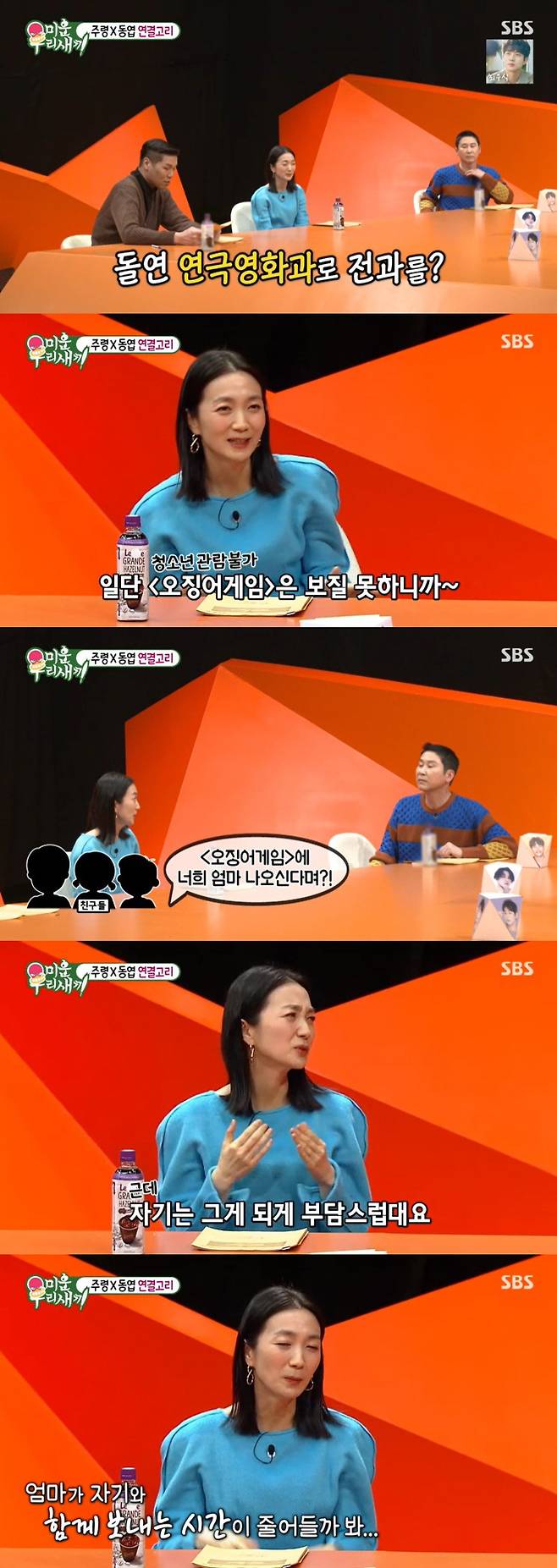 5일 방송된 SBS 예능프로그램 '미운 우리 새끼'에서는 '오징어게임' 한미녀로 전세계를 놀라게 한 배우 김주령이 스페셜MC로 출연했다.