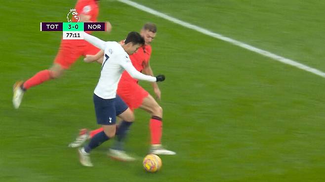 모라의 패스를 받은 손흥민이 노리치 시티 수비 사이로 공을 되돌려주자 모라가 강력한 오른발 슛으로 그물망을 흔들었습니다.