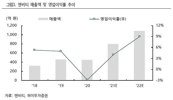 하이투자證 "엔비티, 실적 개선 및 성장성 가시화 전망"