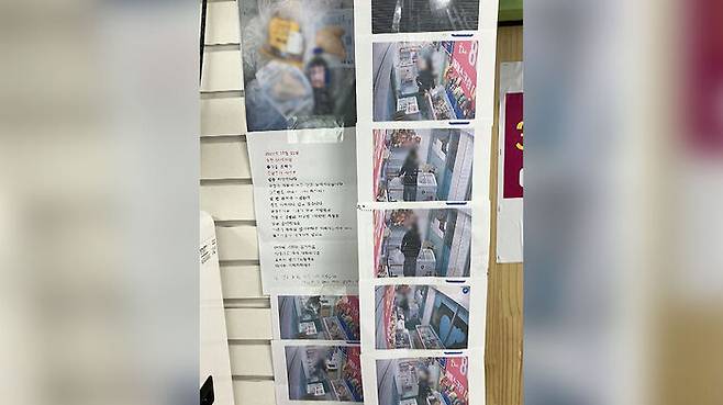 함께 붙은 CCTV 영상 캡처 사진에는 검은색 패딩을 입은 남성이 들고 온 무언가를 매장에 비치된 비닐봉지에 집어넣고 냉동고에 투기하는 모습이 담겼습니다.