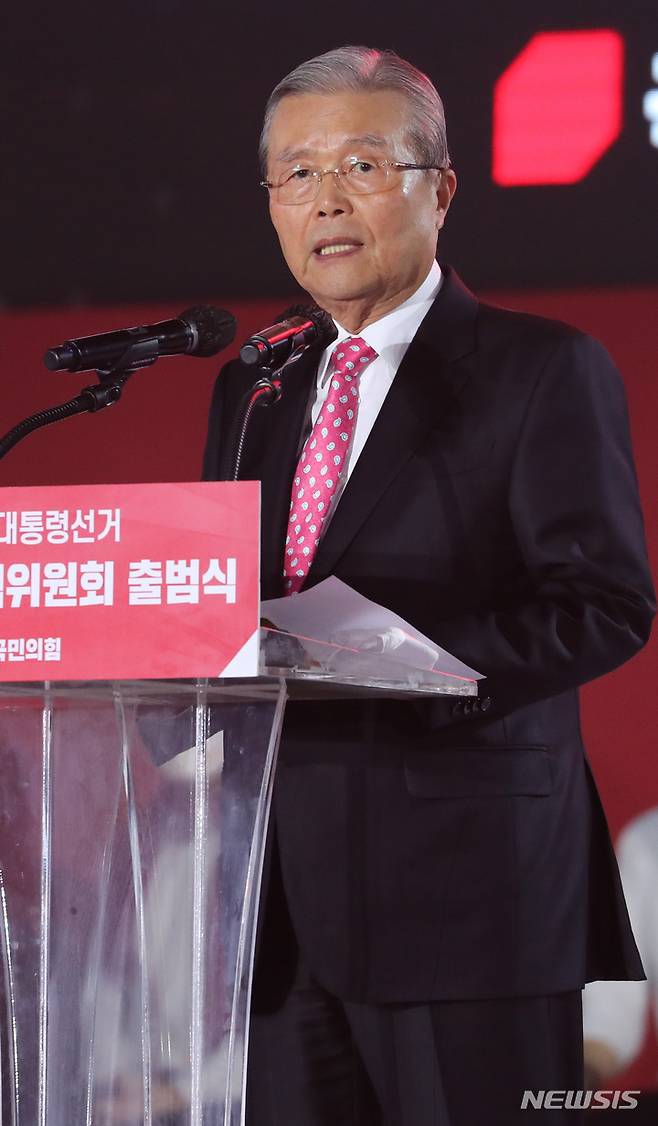 선대위 출범식 연설하는 김종인 국민의힘 총괄선대위원장