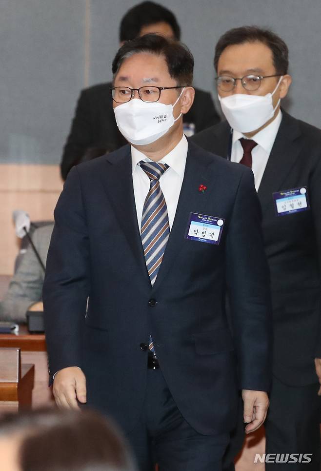 [서울=뉴시스] 김명원 기자 = 박범계 법무부 장관이 6일 서울 종로구 정부서울청사 별관에서 열린 공정경제 성과보고대회에 참석하고 있다. 2021.12.06. kmx1105@newsis.com