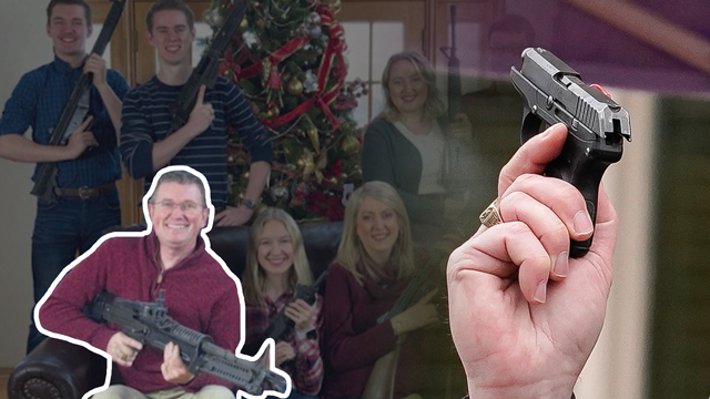 사진의 주인공은 토머스 매시 켄터키주 하원의원과 그 가족입니다. '총기 옹호론'자인 것이 분명한 토머스 매시 의원이 SNS에 이 사진을 올린 시기가 우선 문제입니다.
