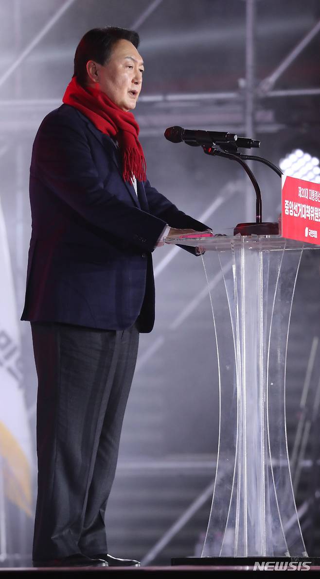 연설하는 윤석열 국민의힘 대선 후보