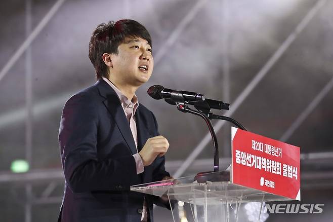 [서울=뉴시스] 국회사진기자단 = 이준석 국민의힘 상임선대위원장이 6일 서울 송파구 올림픽공원 체조경기장에서 열린 국민의힘 제20대 대통령선거 중앙선거대책위원회 출범식에서 연설을 하고 있다. 2021.12.06. photo@newsis.com