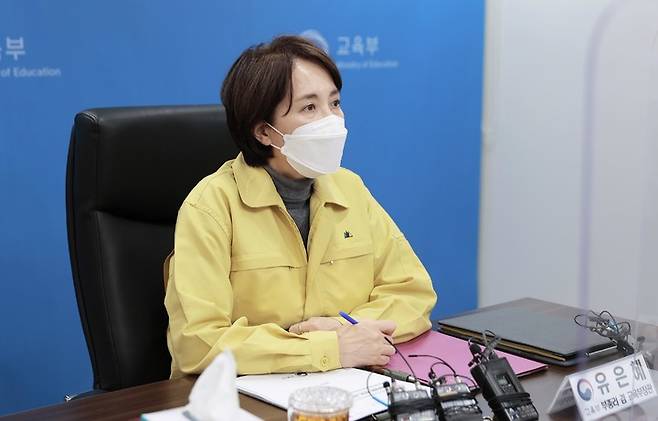 [서울=뉴시스] 유은혜 사회부총리 겸 교육부 장관이 6일 서울 종로구 정부서울청사에서 열린 전국 시도교육감 영상 간담회에 참석해 발언하고 있다. (사진=교육부 제공) 2021.12.06. photo@newsis.com *재판매 및 DB 금지