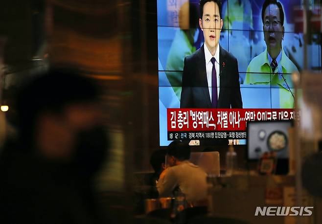 [서울=뉴시스] 조성우 기자 = 6일부터 4주간 사적 모임 최대 인원이 수도권 6명, 비수도권 8명으로 제한된다. 방역패스 적용 대상도 식당과 카페를 비롯한 각종 실내 다중이용시설로 확대 적용됐다. 6일 오후 서울 종로구 젊음의 거리 한 식당에 방역패스 관련 뉴스가 나오고 있다. 2021.12.06. xconfind@newsis.com