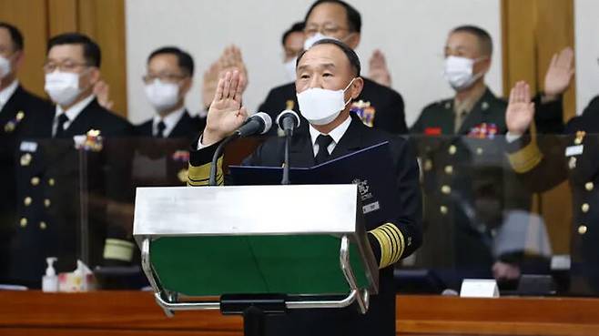 김정수 제독은 특이한 이력이 있습니다. 임기제 진급을 2번 연속한 것입니다. 임기제 진급은 해당 계급으로 진급하지 못할 대상자를 일정 임기를 정해 진급시키는 제도입니다. 임기 마치면 전역입니다. 하지만 김정수 제독은 이번 정부에서만 임기제 기획관리참모부장에 이어 임기제 참모차장으로 연속 진급했습니다.