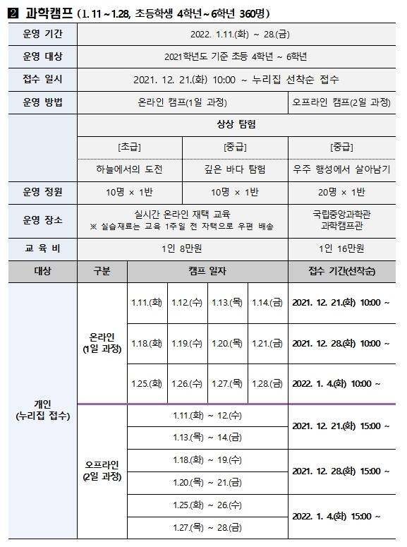 참가자 접수는 과학교실은 오는 8일, 과학캠프은 오는 21일부터 선착순 모집한다.