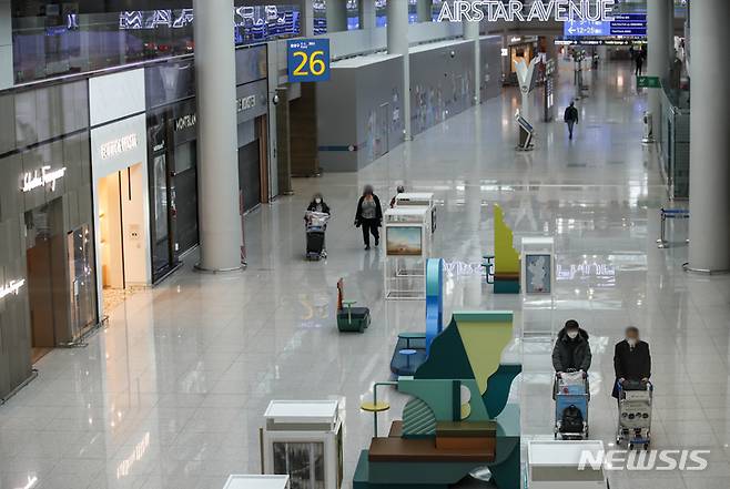 [인천공항=뉴시스] 정병혁 기자 = 코로나19의 새로운 변이 바이러스인 오미크론 확산이 이어지면서 항공, 관광업계에 불똥이 튀고 있다. 위드 코로나(단계적 일상회복) 시행 전후로 해외여행 상품을 판매했던 이커머스 업계는 고객 환불 요구가 이어지고 있다. 해외 관광객의 방한 기대감에 부풀었던 면세업계도 대책 마련에 힘을 쏟고 있다. 사진은 한산한 모습을 보인 7일 오전 인천국제공항 제1여객터미널 출국장 면세점 구역. 2021.12.07. jhope@newsis.com