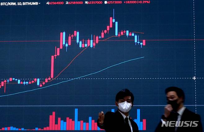 [서울=뉴시스] 추상철 기자 = 낙폭을 키웠던 비트코인 등 암호화폐가 소폭 반등 한 후 횡보세를 보이고 있는 7일 오후 서울 서초구 빗썸 고객지원센터 전광판에 비트코인 시세가 나타나고 있다. 2021.12.07. scchoo@newsis.com