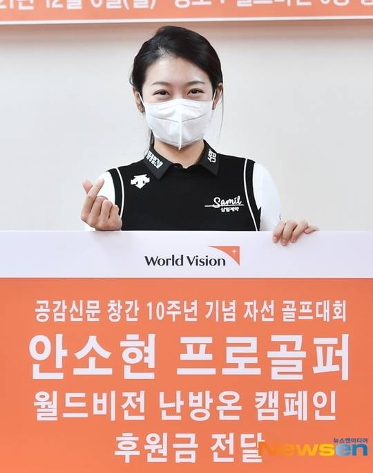 이날 안소현이 월드비전에 전달한 후원금은 지난 1일, 인천시 스카이72 골프장에서 진행된 공감신문 창간 10주년 자선 골프 대회 수익금과 자신의 사비를 더해 만들어졌다.