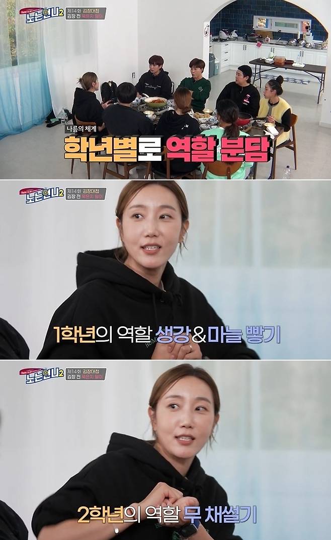 12월 7일 방송된 티캐스트 E채널 '노는언니2'에서는 박세리-한유미-정유인-김자인-신수지-김성연-박세경-김수현이 군침 도는 '제1회 노는언니배 김장 대전'을 펼치는 모습이 담겼다.