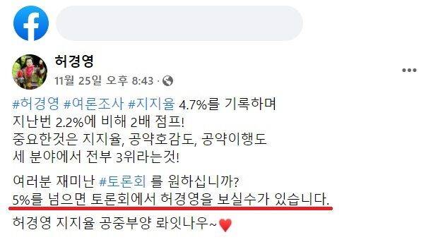 여론조사 지지율 5%를 넘기면 방송 토론 참가 자격이 생긴다는 뜻입니다. 자신의 지지율이 5%에 근접했다는 여론조사를 인용하며, 위와 같이 주장했습니다. 저희 사실은팀에 허경영 후보의 말이 사실인지 팩트체크해달라는 요청이 들어왔습니다.