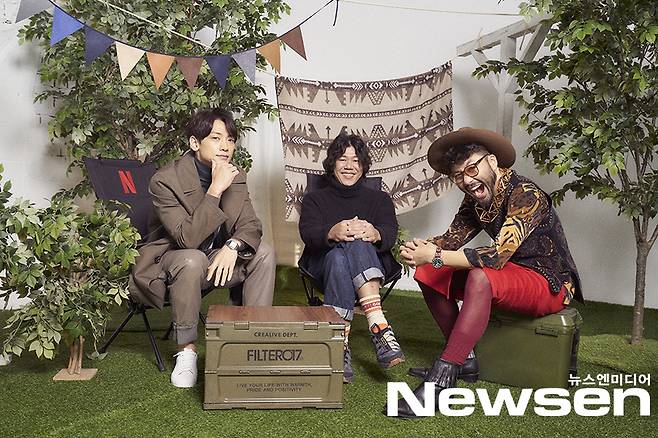 가수 비(정지훈), 노홍철, 이상순이 12월 8일 오전 온라인으로 진행된 넷플릭스 시리즈 '먹보와 털보' 제작발표회에서 포즈를 취하고 있다.