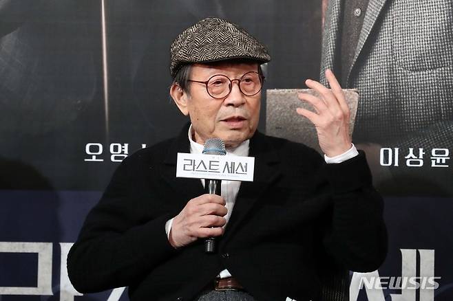 [서울=뉴시스] 박진희 기자 = 연극 '라스트 세션' 프로이트 역의 배우 신구가 8일 서울 종로구 예스24스테이지에서 기자간담회를 하고 있다. 연극 '라스트 세션'은 미국의 극작가 마크 세인트 저메인이 아맨드 M. 니콜라이의 저서 '루이스 vs. 프로이트(THE QUESTION OF GOD)'에서 영감을 얻어 쓴 작품으로 지그문트 프로이트와 C.S. 루이스가 직접 만나 논쟁을 벌인다는 상상에 기반한 2인극이다. 2021.12.08. pak7130@newsis.com