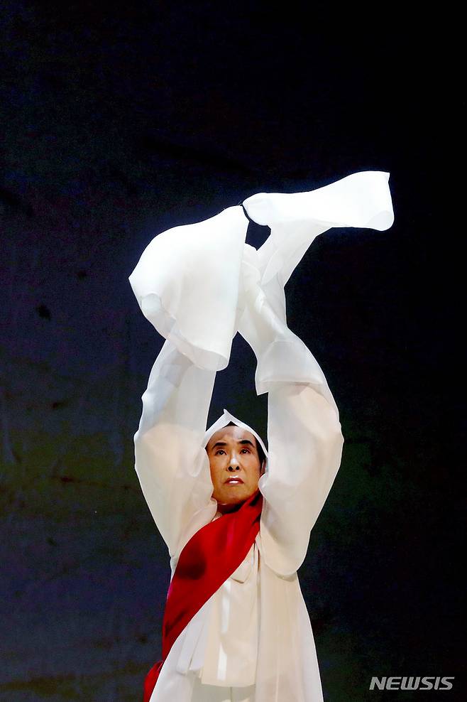 [서울=뉴시스] 김병문 기자 = 8일 오후 서울 종로구 세종문화회관에서 크라운해태제과 주최로 열린 국악공연 '제16회 창신제' 리허설에서 채상묵 명인이 승무 공연을 선보이고 있다. 2021.12.08. dadazon@newsis.com