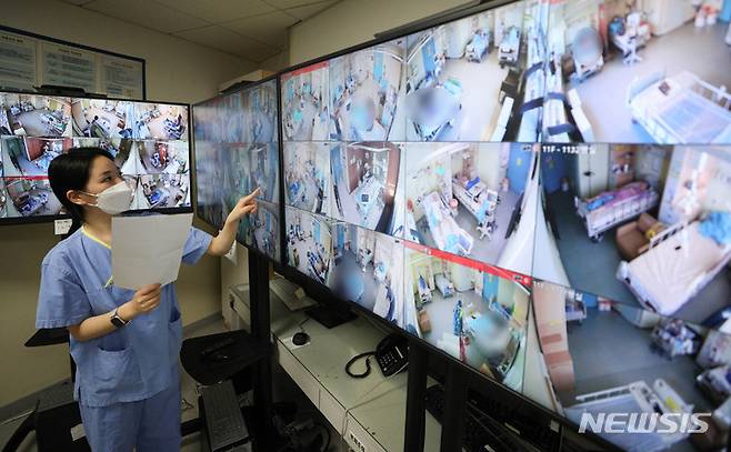 [서울=뉴시스] 고승민 기자 = 코로나19 신규 확진자가 7,175명 발생한 8일 오후 서울 중랑구 서울의료원 코로나19 종합상황실에서 의료진들이 업무를 보고 있다. (공동취재사진) 2021.12.08. photo@newsis.com