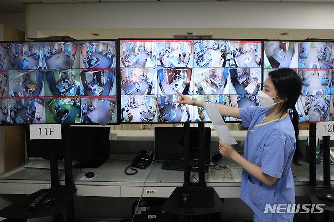 [서울=뉴시스] 고승민 기자 = 코로나19 신규 확진자가 7,175명 발생한 8일 오후 서울 중랑구 서울의료원 코로나19 종합상황실에서 의료진들이 업무를 보고 있다. (공동취재사진) 2021.12.08. photo@newsis.com