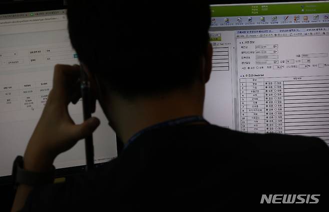 [서울=뉴시스] 고승민 기자 = 8일 서울의료원 재택치료관리 상황실에서 의료진이 재택 치료 중인 코로나19 확진자 모니터링 업무를 하고 있다. (공동취재사진) photo@newsis.com