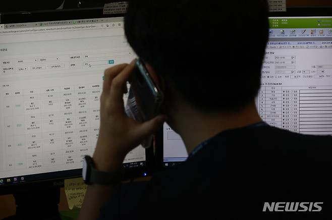 [서울=뉴시스] 고승민 기자 = 8일 서울의료원 재택치료관리 상황실에서 의료진이 재택 치료 중인 코로나19 확진자 모니터링 업무를 하고 있다. (공동취재사진) photo@newsis.com