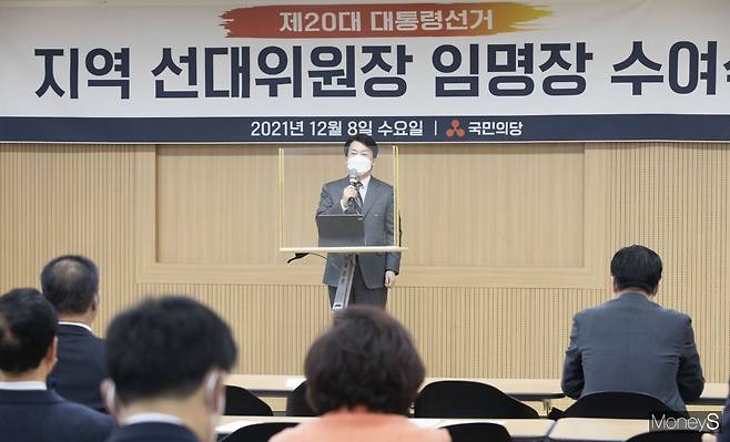 안철수 국민의당 대선 후보가 8일 오후 서울 여의도 이룸센터에서 열린 지역선대위원장 임명장 수여식에서 인사말을 하고 있다.