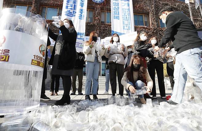'일회용컵 쓰지 말아요' 퍼포먼스