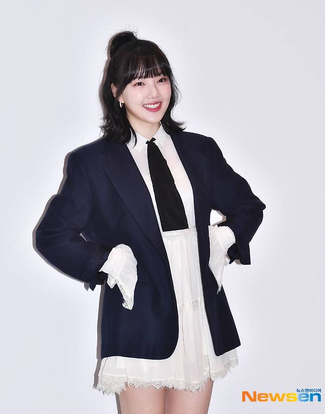 이날 전 여자친구 예린이 MC로 참석하여 사진 포즈를 취하고 있다.