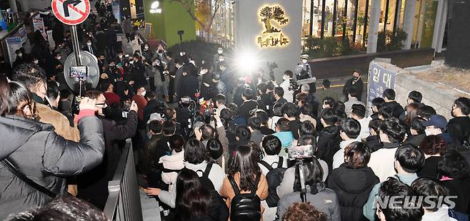 [서울=뉴시스] 국회사진기자단 = 윤석열 국민의힘 대선 후보가 8일 서울 종로구 대학로 거리에서 거리 인사하고 있다. 2021.12.08. photo@newsis.com