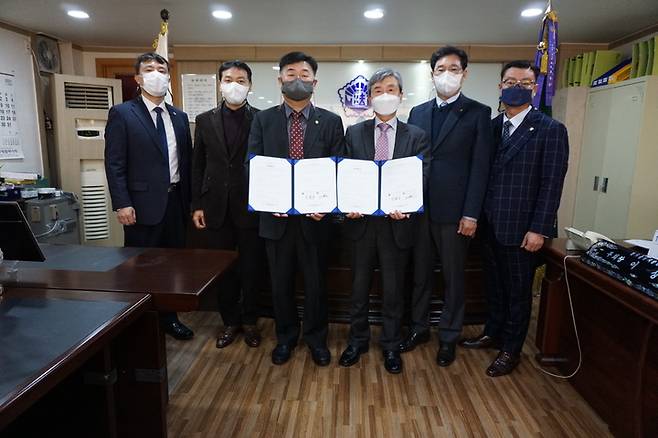 [수원=뉴시스] 박종대 기자 = 경기중앙지방변호사회와 경기중앙지방법무사회는 8일 경기 수원시 영통구 원천동 법무사회관 4층 회장실에서 '사법서비스의 향상과 법조비리 근절을 위한 업무협약'을 체결했다.
