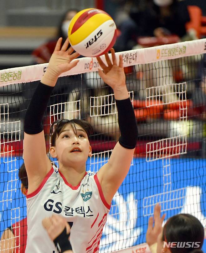 [광주=뉴시스] 류형근 기자 = 8일 오후 광주 서구 페퍼스타디움(염주종합체육관)에서 열린 2021~2022 V-리그 AI페퍼스 대 GS칼텍스의 경기, GS칼텍스 안혜진이 토스 훈련을 하고 있다. 2021.12.08. hgryu77@newsis.com