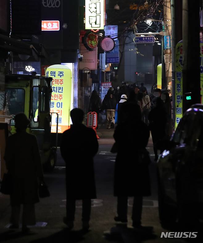 [서울=뉴시스] 조수정 기자 = 0시 기준 코로나19 신규 확진자수가 7000명을 넘긴 8일 밤 서울 시내 한 먹자골목에서 시민들이 북적이고 있다. 2021.12.08. chocrystal@newsis.com
