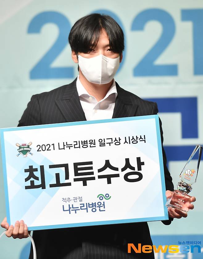이날 삼성 백정현이 일구상 최고 투수상을 수상했다