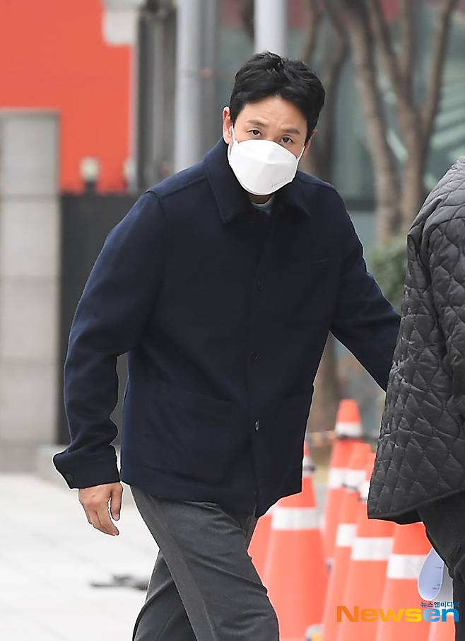 배우 이선균이 12월 9일 오후 SBS 파워FM ‘최화정의 파워타임’ 일정을 위해 서울 양천구 SBS 목동 사옥에 들어서고 있다.