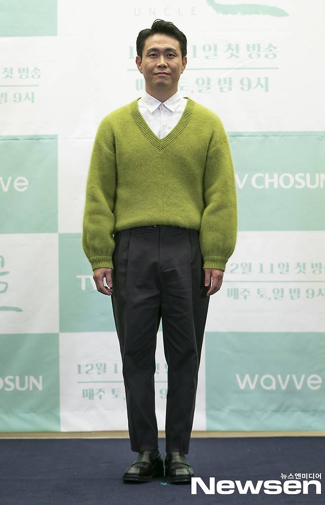 배우 오정세가 12월 9일 오후 온라인으로 진행된 TV조선 새 토일 미니시리즈 '엉클' 제작발표회에서 포즈를 취하고 있다.
