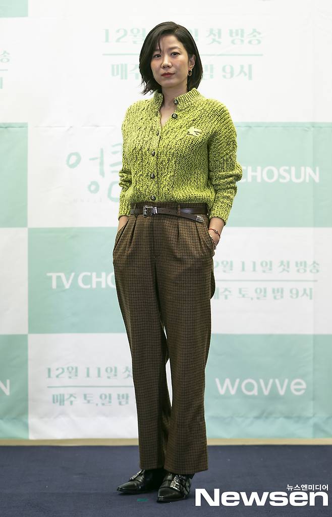 배우 전혜진이 12월 9일 오후 온라인으로 진행된 TV조선 새 토일 미니시리즈 '엉클' 제작발표회에서 포즈를 취하고 있다.
