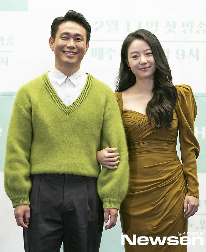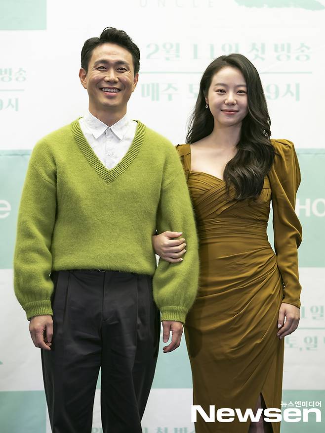 배우 오정세, 이시원이 12월 9일 오후 온라인으로 진행된 TV조선 새 토일 미니시리즈 '엉클' 제작발표회에서 포즈를 취하고 있다.