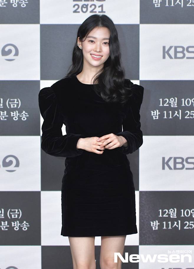 배우 정이서가 12월 9일 오후 온라인으로 진행된 KBS 2TV 드라마 스페셜 2021 - '셋' 기자간담회에서 포즈를 취하고 있다.