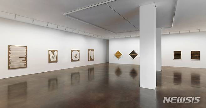 [서울=뉴시스]서울 삼청동 국제갤러리는 9일 단색화 작가 권영우 개인전을 개막했다. 이번 전시는 작가의 파리 시기(1978~1989)에 해당하는 백색 한지 작품뿐 아니라, 처음 선보이는 1989년 귀국 직후의 색채 한지 작품, 그리고 패널에 한지를 겹쳐 발라 기하학적 형상을 구현한 2000년대 이후의 작품으로 선보인다. 전시는 2022년 1월 30일까지. 사진은 국제갤러리 2관(K2) 권영우 개인전 설치전경. 이미지 제공: 국제갤러리. 2021.12.09. photo@newsis.com